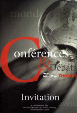 Jean-Marc Thobois animera trois conférences débats dans notre région sur le Moyen Orient, le conflit israëlo-arabe et l'intérêt des nations pour cette région du monde, vendredi 20 et samedi 21 avril 2012 à Désandans. Ces conférences sont gratuites.