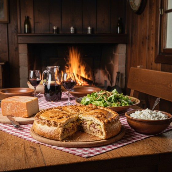 2. Le Plat de Résistance : La tourte de la vallée (la Tourte du Marquaire) accompagnée d'une salade verte.